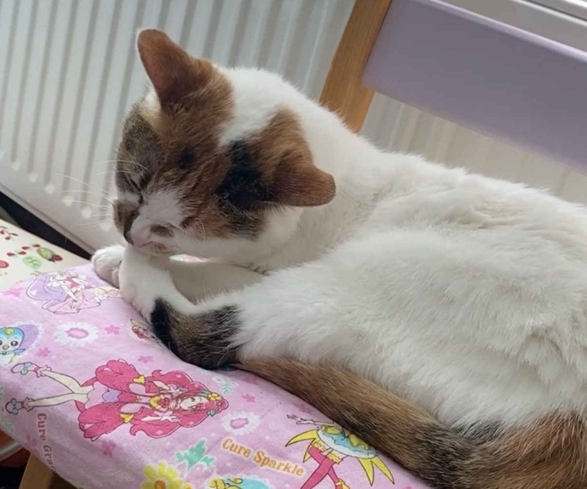 以前飼っていた「タマ」は、気持ちは若いままの猫でした。年を取ってジャンプ力が落ちてきていたにも関わらず、よく高い電話台に果敢に挑戦しては苦戦していたのを覚えています。