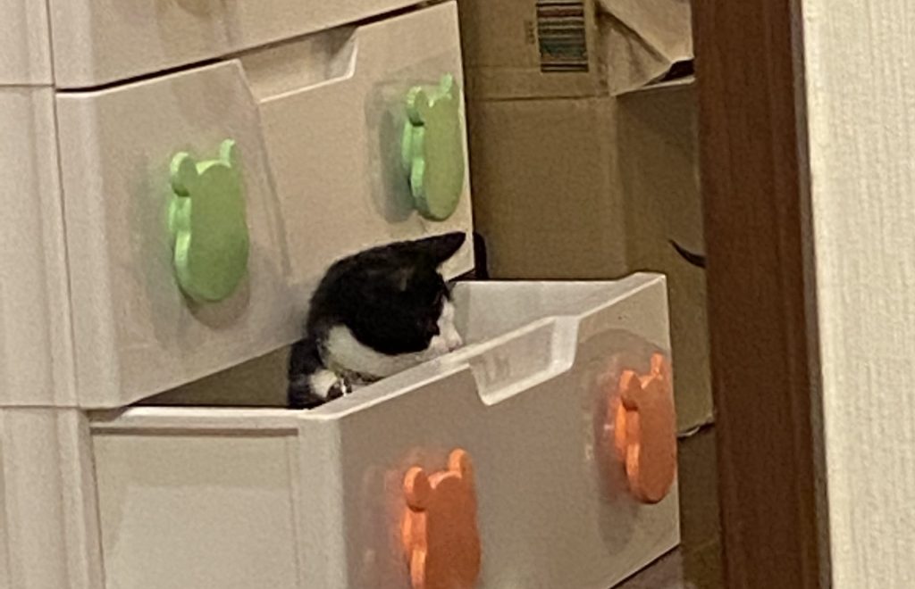 一番肝を冷やしたのはキッチンです。魚を焼いた後、いい匂いに誘われて子猫がキッチンへ。グリルを閉めていても、排気口付近や取手付近の扉はまだ熱々です。そこに体を伸ばして前足を置いてしまい「アチッ!」となる姿を見て、心臓が止まりそうになりました。